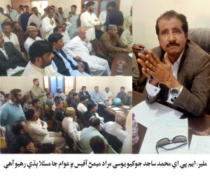 ڪراچي. محمد ساجد جوکيو جي سربراهي ۾ عوامي مسئلن کي جلد حل ڪرائڻ لاءِ يوسي آفيس ۾ اجلاس طلب، علائقي جي معززين سميت سوشل سماجي اڳواڻ ۽ سياسي اڳواڻن جي وڏي تعداد ۾ شرڪت، اجلاس ۾ علائقي واسين پاران مسئلن جا دفتر کولي ڇڏيا، ساجد جوکيو پاران تمام مسئلن کي جلد حل ڪرائڻ جي يقين ڌياني تفصيل موجب ملير جي ڪاروباري علائقي مرا د ميمڻ ڳوٺ ۾ اليڪشن ۾ چونڊجي آيل ايم پي اي محمد ساجد جوکيو جي سربراهي هيٺ يوسي مراد ميمڻ آفيس ۾ عوام جا مسئلا ٻڌڻ لاءِ اجلاس گهرايو اجلاس ۾ يوسي آفيس انتظاميا سميت، ايجيوڪيشن، ايليمينٽري ۽ ايجوڪيشن ورڪس ڊويزن ملير صحت کاتي پبلڪ هيلٿ، گڏاپ ٽائون انتظاميه سميت تمام ادارن جا آفيسر ۽ عملي سميت پڻ موجود هئا. اجلاس ۾ علائقي جي معززين سميت سوشل سماجي ۽ سياسي اڳواڻن شرڪت ڪئي ان دوران علائقي جي معززين رمضان ميمڻ، حڪيم خاصخليي، شفيع بروهي، جميل ميمڻ، حبيب الله ميمڻ، حاجي راشد ميمڻ سميت ٻين محمد ساجد جوکيو کي علائقي ۾ پيش ايندڙ اسڪولن جي اڌوري اڏاوت، گهٽين ۾ موجود گندگي ۽ پاڻي جي کوٽ بابت آگاهي ڏيندي ٻڌايو ته ڪافي عرصي کان گلستان مصطفيٰ، شفيع محمد پاڙو، الهندو پاڙو، حاجي احمد پاڙو سميت مختلف پاڙن جي گهٽين ۾ گندگي ۽ آلودگي وڌي رهي آهي پئيڻ جي صاف پاڻي جي لائنن ۾ گٽر جو پاڻي مڪس ٿي رهيو آهي ڪافي گهٽين ۾ پيڻ جي صاف پاڻي جون نيون لائنن جي کوٽ آهي جنهن ڪري علائقي واسي ڏوران پاڻي ڀرڻ تي مجبور آهن. اجلاس جي اڳواڻ محمد ساجد جوکيو علائقي معززين جي شڪايتون ٻڌڻ بعد موجود تمام آفيسرن کي عوامي مسئلن کي جلد حل ڪرائڻ بابت حڪم ڏيندي چيو ته اسانجي پيپلز پارٽي جو منشور عوامي مسئلن کي حل ڪرڻ آهي ڪنهن به اداري بابت عوام پاران شڪايت وصول ٿيندي ته ان اداري جي آفيسرن خلاف فلفور ايڪشن کنيو ويندو ايم پي اي محمد ساجد جوکيو پاران علائقي جي معززين کي يقين ڏيارو ته تمام جلد توهانجي مسئلن کي ڪرايو ويندو. ان موقعي تي يوسي وائيس چيئرمين سليم ميمڻ، وڏيرو منظور ميمڻ، عبدالغفور جوکيو، اڪبر جوکيو، حبيب الله ميمڻ، الطاف خاصخيلي، حاجي راشد ميمڻ ۽ ٻيا موجود هئا.