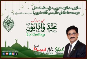 ڪراچي (10 ذوالحج 1445 هه) سنڌ جي وڏي وزير سيد مراد علي شاهه ڌرتي واسين کي عيد جون واڌايون ڏيندي چيو آھي تھ سنڌ جي ماڻھن کي عيد جون خوشيون مبارڪ ھجن. اھا ڳالھھ ھن وزيراعليٰ ھائوس مان سندس جاري ڪيل پيغام ۾ ڪئي. وڏي وزير چيو تھ عيدالاضحيٰ جي اصل روح ايثار ۽ قرباني آهي ۽ اسانکي عيد جي خوشين ۾ پنهنجي مائٽن مائٽن، پاڙيسرين ۽ غريبن کي پڻ شامل ڪرڻ گهرجي. وڏي وزير دعا ڪندي چيو تھ الله سائين سنڌ سميت سڄي ملڪ ۾ امن ۽ خوشحالي عطا فرمائي.
