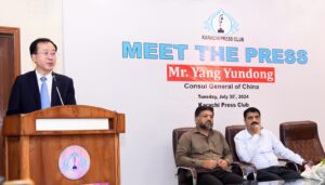 سي پيڪ تي پاڪستان ۽ چين گڏجي ڪم ڪندا، هن رٿا جي ڪاميابي لاءِ ٻنهي پاسن جو ميڊيا اهم ڪردار ادا ڪري رهي آهي، گوادر پورٽ ريجن کي جوڙڻ ۾ اهم ڪردار ادا ڪندو، اسان پاڪستان جي انڊسٽري کي سپورٽ ڪيون ٿا، چين پاران سرمايو لڳائڻ سان پاڪستان جون حالتون بهتر ٿينديون، اسان کي مستقبل ۾ به گڏجي ڪم ڪرڻو آهي، پاڪستان پاران پاڪستان ۾ موجود چائنيز کي سيڪيورٽي ڏيڻ جي خاطري ڪرائي وئي آهي، هن چيوته پاڪستان ۽ چائنا گڏجي دهشتگردي جي خلاف قدم کڻي رهيا آهن، دهشتگردي جي انت سان ئي پاڪ چائنا لاڳاپا مضبوط ٿيا آهن، سيڪنڊ فيز ۾ گوادر ۽ سي پيڪ لاءِ پاڪستان جي سيڪيورٽي کي يقيني بڻائي ڇو ته بين القوامي رابطي لاءِ هي اهم پورٽ آهي، سي پيڪ جي ٻئي مرحلي ۾ پرائيويٽ ڪمپنين کي وڌيڪ شامل ڪري رهيا آهيون، پاڪستاني حڪومت کي اهو سمجهه گهرجي ته پرائيويٽ ڪمپنين کي زبردستي نه ٿا آڻي سگهون، هن پراجيڪٽ لاءِ پاڪستان کي ماحول کي سازگار، پر امن ۽ محفوظ بڻائوپوندو ته جيئن سيڙپڪاري اچي سگهي، يانگ يونڊونگ چوته اسان بلوچستان جي معاشي استحڪام ۽ خوشحالي لاءِ ڪم ڪري رهيا آهيون، تنهن ڪري اتان جي سياسي پارٽين کي امن امان ڪرائڻ بابت ڪرم ڪرڻ گهرجي، بلوچستان جي خوشحالي ۽ ترقي لاءِ گڏجي ڪم ڪرڻو پوندو، هن چيو ته ڌاٻيجي اڪنامڪ زون اهم پراجيڪٽس آهن، خنجراب پاس جي حوالي سان ٻه طرفو مسئلا آهن، ٻنهي پاسن کان تاجرن جا مسئلا آهن، ٻئي ملڪ گڏجي ويهي مسئلا حو ڪرڻ لاءِ ڪوشش