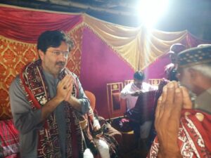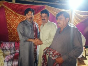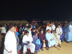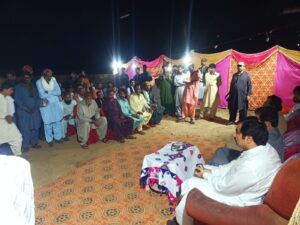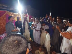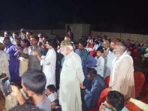 معزز حاجي مير حسن جوکيو پاران ڏنل آجياڻي کي خطاب ڪندي ڪيون، صوبائي وزير سيد رياض حسين شاھ شيرازي وڌيڪ چيو تہ ضلعي ٺٽي سان اسانجي وڏڙن جي نينھن جو ناتو آھي، جنھن ناتي کي اسان بہ نڀائيندا پيا اچون، آء ھتان جي ھر ڳوٺ جي مسئلي کان واقف آھيان، عوام کي پيئڻ جي صاف پاڻي، صحت، تعليم، روزگار، روڊ، رستي، بجلي جھڙيون سموريون بنيادي سھولتون مھيا ڪيون وينديون، صوبائي وزير سيد رياض حسين شاھ شيرازي ان موقعي تي درگاھ امير شاھ جيلاني، ڳوٺ مڱيلڌو جوکيو ۽ ڳوٺ عالم سالار جوکيو ۾ پيئن جي پاڻي جي لائن ڏيڻ جو پڻ اعلان ڪندي چيو تہ ھتان جي ڳوٺن کي پڪو ڪرائي اتان جي رھواسين کي 16/16 ايڪڙ زمين پڻ ڏياري ويندي، جيئن ھو گذر سفر ڪري سگھن. آجياڻي کي خطاب ڪندي حاجي مير حسن جوکيو چيو تہ تازو شروع ٿيل برساتن ھتي بہ وڏي تباھي مچائي ڇڏي آھي، ھتان جي ڪيترن ئي غريب پورھيتن جا ڪچا گھر ڊاھي پٽ ڪري ڇڏيا آھن، جيڪي ھن وقت کليل آسمان ھيٺ بي يارو مددگار بڻجي ڪنھن مسيحا جا منتظر آھن، ان کانسواء ھتان جي ڳوٺن ۾ ڪي بہ بنيادي سھوليتون ميسر ناھن، جيڪي مھيا ڪيون وڃن. حاجي ميرحسن جوکيو چيو تہ