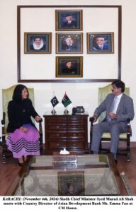 ڪراچي (6 نومبر): سنڌ جي وڏي وزير سيد مراد علي شاهه سان ايشيائي ترقياتي بينڪ (ADB) جي ڪنٽري ڊائريڪٽر ايمافين Ms Emma Fan وچ ۾ ملاقات ڪئي جنهن ۾ 1.3 ارب ڊالرن جي ترقياتي پورٽ فوليو بابت خيالن جي ڏي وٺ ڪئي وئي. ملاقات دوران وڏي وزير پنهنجي حڪومت جي ترقياتي ترجيحن تي روشني وڌي ۽ اي ڊي بي ۽ صوبائي حڪومت وچ ۾ سهڪار وڌائڻ لاءِ موقعن جي ڳولا ڪئي. اجلاس وزيراعليٰ هائوس ۾ ٿيو جنهن ۾ چيئرمين پي اينڊ ڊي نجم شاهه ۽ وڏي وزير جو سيڪريٽري رحيم شيخ شرڪت ڪئي. اجلاس ۾ ايشيائي ترقياتي بئنڪ جو ڊپٽي ڪنٽري ڊائريڪٽر اسد عليم پڻ شرڪت ڪئي. ريڊ لائن: وڏي وزير ۽ اي ڊي بي جي ڪنٽري هيڊ بي آر ٽي ريڊ لائين تي خيالن جي ڏي وٺ ڪئي ۽ منصوبي تي هلندڙ ڪم کي تيز ڪرڻ تي اتفاق ڪيو. وڏي وزير چيو ته بي آر ٽي ريڊ لائن پروجيڪٽ بس ريپڊ ٽرانزٽ (BRT) ڪوريڊور ذريعي ڪراچي ۾ هڪ پائيدار شهري ٽرانسپورٽ سسٽم کي هٿي وٺرائيندو جنهن سان اچ وڃ ۽ رسائي جي ضرورتن تي ڌيان ڏنو ويو آهي. هن وڌيڪ چيو ته ڪراچي ۾ پبلڪ ٽرانسپورٽ جي معيار کي بهتر بڻائڻ لاءِ 26.6 ڪلوميٽر ڪوريڊور ۽ ان سان لاڳاپيل سهولتن سان 15 لک ماڻهن کي سڌو سنئون فائدو ٿيندو. وڏي وزير چيو ته هي پاڪستان جي پهريون بي آر ٽي منصوبو آهي جيڪو ڍورن جي فضلي مان بايو ميٿين تي هلندو آهي جنهن سان شهر جي ماحوليات ۽ مالي استحڪام ۾ بهتري اچي رهي آهي. اها نشاندهي ڪئي وئي ته لوٽ-I جي فزيڪل پروگريسو 18.37٪ هئي ۽ لوٽ-II جي 16.06٪ هئي. سنڌ سيڪنڊري ايجوڪيشن پروجيڪٽ: وڏي وزير ۽ ايمافين سنڌ سيڪنڊري ايجوڪيشن امپروومينٽ پروجيڪٽ (SSEIP) تي پڻ خيالن جي ڏي وٺ ڪئي جنهن تحت صوبي جي 10 ضلعن ۾ موجود پرائمري اسڪولن ۾ 160 سيڪنڊري اسڪول بلاڪ ٺاهيا ويا آهن ته جيئن پرائمري ۽ پوسٽ پرائمري تعليم جي وچ ۾ فرق کي ختم ڪري سگهجي. پروجيڪٽ جو مقصد پنجن بنيادي مضمونن (انگريزي، رياضي، حياتيات، ڪيمسٽري ۽ فزڪس) ۾ تدريسي صلاحيت کي بهتر بڻائڻ ۽ ثانوي تعليم جي معيار کي وڌائڻ لاءِ آپٽيڪل مارڪ ريڊر (OMR) مشين ذريعي ثانوي تعليمي امتحاني نظام کي مضبوط ڪرڻ آهي. اهو 13.1 ارب رپين جو منصوبو آهي. منصوبي جي فزيڪل پروگريس تي بحث ڪندي اجلاس کي ٻڌايو ويو ته 117 اسڪولن لاءِ سول ورڪس جا سمورا ٺيڪا ڏنا ويا آهن (23 ڊسمبر – 24 مئي) ۽ تعميراتي ڪم جاري آهي. وڏي وزير چيو ته ڊسمبر 2024ع جي شروعات ۾ 2630 استادن کي تربيت ڏيڻ جو پلان ٺاهيو ويو آهي. هن وڌيڪ چيو ته ٽريننگ مينوئل ۾ امتحاني سڌارا، ايس ايل او جي بنياد تي امتحانن، 5 وڏن مضمونن ۾ 400 امتحانن/پيپر سيٽرن لاءِ ورڪشاپ ۽ او ايم آر سامان جي فراهمي مڪمل ڪئي وئي. ٻوڏ متاثرين لاءِ هنگامي رليف پلان: هڪ ٻيو منصوبو ايمرجنسي فلڊ اسسٽنس پروجيڪٽ (EFAP) تي وڏي وزير ۽ ايي ڊي بي جي ڪنٽري ڊائريڪٽر ڳالهه ٻولهه ڪئي. اي ايف اي پي تحت صوبي جي 18 ضلعن ۾ سيپٽمبر 2022 تائين ٻوڏ/ برسات متاثر روڊن جي بهتري/ بحالي لاءِ ڪم ڪيو پيو وڃي. اهي روڊ مختلف ڳوٺن ۽ شهرن جي متاثر ماڻهن کي مارڪيٽن، تعليمي مرڪزن، صحت جون سهولتون وغيره فراهم ڪندا. وڏي وزير چيو ته موسم کان بچاءُ لاءِ خاص ڊيزائن ٿيل مهارتن جي ضرورت هئي تنهن ڪري پروجيڪٽ ٻوڏ/ برساتن ۾ تباهه ٿيل روڊن جي بحاليءَ لاءِ جوڳا اپاءُ ورتا آهن. هي منصوبو 48.4 ارب رپين جو آهي. منصوبي جي فزيڪل پروگريسو تي بحث ڪندي وڏي وزير چيو ته سمورن 17 روڊ پيڪيجز تي تعميراتي سرگرميون جاري آهن. هن وڌيڪ چيو ته هن وقت اڪثر روڊ پيڪيجز واٽر بائونڊ ميڪادم (WBM) اسٽيج تي آهن. وڏي وزير چيو ته پراجيڪٽ مئنيجمينٽ ڪنسلٽنٽس (PMC) ۽ ڪانٽريڪٽرن سان پندرهن ڏينهن اجلاس منعقد ڪيا پيا وڃن ته جيئن فزيڪل سرگرميون تيز ڪيون وڃن ان ڳالهه کي يقيني بڻايو وڃي ته معيار ۽ ٽائيم لائينز موجب ڪم ٿيڻ گهرجي. هن وڌيڪ چيو ته پي ايم سي جي TOR’s موجب پراجيڪٽ ڊائريڪٽر اي ايف اي پي حيدرآباد جي آفيس ۾ RAMS سيٽ اپ قائم ڪيو پيو وڃي ۽ ان مطابق RAMS ڊيٽا جي اپ گريڊيشن تي ڪم شروع ڪيو ويندو. فلڊ ايمرجنسي هائوسنگ پروجيڪٽ: سنڌ فلڊ ايمرجنسي هائوسنگ ريڪنسٽرڪشن پروجيڪٽ تي ڳالهائيندي وڏي وزير چيو ته اي ڊي بي جي فنانسنگ گهٽ ۾ گهٽ 250000 ملٽي هي