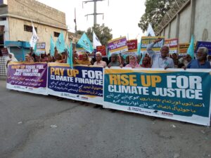 احتجاجي ريليءَ کي خطاب ڪندي ، فاطمه مجيد ، سينيئر وائيس چيئرپرسن ، پاڪستان فشر فوڪ فورم ، چيو ته اڄ سڄي دنيا جا نمائندا ، آذربائيجان جي شھر باڪوءَ ۾ COP29 موسمياتي تبديليءَ جي سربراهي اجلاس ۾ عالمي اڳواڻن تي زور ڀريو آھي ته هو نئين موسمياتي مالياتي هدف ۽ معدني توانائي کان ٻاهر هڪ قدم اڳتي وڌي ڪو حل پيش ڪن فراهم . ھن ڪانفرنس ۾ فشر فوڪ کان علاوه ھزارين ماڻھن جا مختلف پر اجتماعي ايڪشن ٿيا آھن جنھن ۾ مطالبا ڪيا ويا آهن موسمياتي مالياتي ھدف حاصل ڪرڻ ھڪ نئين معاهدي ڪرڻ جي ضرورت آھي، جيڪو ترقي پزير ملڪن کي مختلف قدمن جي ذريعي کربين ڊالر فنڊنگ ڪري ته جيئن اھي ملڪ توانائي جي نظام کي بهتر بڻائڻ لاءِ ڪم ڪن.اسان جو مطالبو آھي تہ گھٽ ۾ گھٽ پنج ٽرلين ڊالر موسمياتي تبديليءَ جي بھتري لاءِ رکيا وڃن فاطمه مجيد وڌيڪ چيو ته موسمياتي تبديليءَ لاءِ فنڊ صرف حقيقي ترقي پزير ملڪن لاءِ ھجڻ گھرجي ۽ ان فنڊ جي ورھاست به منصفاڻي نموني ٿيڻ گھرجي.جيڪي واعدا ڪانفرنس آف پارٽيس اٺاويهه دوران ڪيا ويا ھئا انھن کي وڌيڪَ بھتر ڪرڻ لاء ڪانفرنس آف پارٽيس اوڻٽيھن ۾ پڻ ڪيا وڃن افسوس ته ھن مھل تائين موسمياتي تبديليءَ لاءِ جيڪا فنانسنگ ٿي آھي اھا صرف قرضن جي صورت ۾ ٿي سگھي آھي جنھن سان ترقي پزير ملڪ قرضن جي پريشاني ۾ مبتلا ٿيا آھن جڏھن ضرورت امداد جي فراهمي جي آھي قرضن جي نه آھي. اسان سؤ سيڪڙو امدادي فنڊ جو مطالبو ٿا ڪريون ته جيئن فيز وائيز ھن توانائي جي بحران دنيا نڪري وڃي. ان موقعي تي فشر فوڪ فورم جي انفارميشن سيڪريٽري ايوب شان چيو ته اسان کي فاسل فيول واري آلودگي ڦھلائڻ واري توانائيءَ جي پروجيڪٽس کي ختم ڪرڻو پوندو ۽ انھن کي ڏنل سبسڊي ختم ڪرڻ گھرجي ۽ عسڪريت پسندي وارن فنڊن کي ختم ڪري اميرن تي ٽيڪس لاڳو ڪري بين الاقوامي سطح تي ماحولياتي گدلاڻ ختم ڪرڻ لاءِ کربين ڊالر جمع ڪرڻ جي ضرورت آھي.فشر فوڪ فورم جي ڪراچيءَ ڊويزن جي جنرل سيڪريٽري طالب ڪڇي خطاب ڪندي چيو ته بجليءَ جي وڌندڙ گھرج کي پورو ڪرڻ لاءِ پاڪستان ۾ ڪوئلي تي بجلي ٺاهڻ جي منصوبن تي انحصار ڪيو پيو وڃي جنھن جي ڪري ملڪ جي ڌرتي وڌيڪَ گرم ٿي رھي آھي جنھن لاءِ اسان کي متبادل تلاش ڪرڻا پوندا جنھن ۾ سولر انرجي تي وڌيڪ توجھ ڏيڻ جي ضرورت آھي.