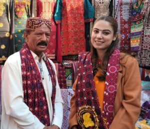 ستون سنڌ لٽريچر فيسٽول ۾ سنڌ جي قابل فخر بھادر نياڻي سنڌ جي سورمي ڊاڪٽر سورٺ سنڌو مھراڻ ھينڊي ڪرافٽس جو اسٽال وزٽ ڪيو مون کين مھراڻ ھينڊي ڪرافٽس جو تيار ڪيل سنڌ ۽ سنڌو سان محبت جي اظھار وارو اجرڪ اوڍايو