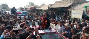 سجاول: پ پ اڳواڻن، ورڪرن، علائقي جي معززين ۽ عوام جي وڏي انگ پاران گلن جي ورکا.