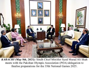 ڪراچي (9 مئي)؛ سنڌ جي وڏي وزير سيد مراد علي شاهه پاڪستان اولمپڪ ايسوسيئيشن (پي او اي) جي اعليٰ سطح جي وفد سان ملاقات ڪئي ته جيئن 35هين نيشنل گيمز 2025 جي تيارين کي حتمي شڪل ڏئي سگهجي. وزيراعليٰ هائوس ۾ ٿيل هن ملاقات کي صوبي ۾ راندين کي هٿي وٺرائڻ ۽ رانديگرن جي ترقي لاءِ اهم قدم سمجهيو ويو آهي. پي او اي جي وفد جي قيادت صدر عارف سعيد ڪئي جڏهن ته سينئر نائب صدر محترمة فاطمه لاہوري، سيڪريٽري جنرل خالد محمود ۽ سنڌ جي سيڪريٽري احمد علي راجپوت پڻ وفد ۾ شامل هئا. وڏي وزير جو پرنسپل سيڪريٽري آغا واصف ۽ راندين وارو سيڪريٽري عليم لاشاري به موجود هئا. سيڪريٽري عبدالعليم لاشاري نيشنل گيمز جي تيارين، لاجسٽڪس ۽ رٿابندي بابت تفصيلي بريفنگ ڏني. وڏي وزير مراد علي شاهه باضابطه اعلان ڪيو ته ڪراچي 6 کان 13 ڊسمبر 2025 تائين 35هين نيشنل گيمز جي ميزباني ڪندو. وڏي وزير ان موقعي کي خوش آئند قرار ڏيندي مڪمل تعاون جو يقين ڏياريندي چيو ته گيمز کي بين الاقوامي معيار مطابق منعقد ڪيو ويندو. وڏي وزير حڪومت کي هدايتون ڏنيون ته رانديگرن کي تربيت، طبي سهولتون، سفر جون سهولتون ۽ جديد انفراسٽرڪچر سميت سڀني بنيادي سهولتن فراهم ڪيا وڃن. هڪ اهم پيش رفت طور وزيراعليٰ نئين سوئمنگ پول جي تعمير ۽ جديد اليڪٽرانڪ ٽائمنگ ۽ اسڪورنگ سسٽمز جي فراهمي جو اعلان ڪيو. هن موقعي تي پاڪستان اولمپڪ ايسوسيئيشن، حڪومت سنڌ ۽ سندھ اولمپڪ ايسوسيئيشن جي وچ ۾ هڪ مفاهمتي يادداشت (ايم او يو) تي پڻ صحيحون ڪيون ويون ته جيئن گيمز جي انعقاد لاءِ هڪ مربوط فريم ورڪ قائم ڪيو وڃي. وڏي وزير چيو ته هي قدم رانديگرن جي فلاح و بهبود ۽ ادارن جي هم آهنگي لاءِ هڪ سنگ ميل ثابت ٿيندو. هن نوجوان ٽيلنٽ جي تربيت ۽ صوبو ڀر ۾ رانديون فروغ ڏيڻ جي اهميت تي زور ڏنو. پي او اي جي صدر عارف سعيد وزيراعليٰ کي نيشنل گيمز بابت تاريخي بريفنگ ڏني ۽ کين انعقاد لاءِ حڪومت سنڌ جي عزم کي ساراهيو. هن چيو ته ايندڙ نيشنل گيمز ملڪ جي رانديگرن ۾ نئون جذبو پيدا ڪري ڇڏيو آهي. حڪومت سنڌ ۽ پاڪستان اولمپڪ ايسوسيئيشن ٻنهي وعدو ڪيو ته رانديگرن جي ڪارڪردگي بهتر بڻائڻ ۽ 35هين نيشنل گيمز کي پاڪستان جي راندين جي تاريخ جو يادگار ايونٽ بڻائڻ لاءِ ڪم ڪندا.