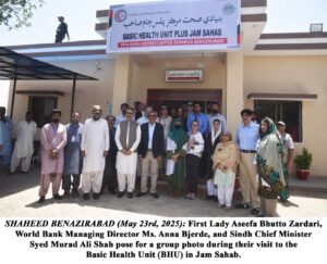شھيد بينظير آباد (23 مئي)؛ ورلڊ بئنڪ جي مينيجنگ ڊائريڪٽر انا بيجيردي، فرسٽ ليڊي آصفه ڀٽو زرداري، سنڌ جي وڏي وزير سيد مراد علي شاهه ۽ ورلڊ بئنڪ جي ڪنٽري ڊائريڪٽر ناجي بنهسين سان گڏ ضلعي شھيد بينظير آباد جي ڳوٺ نظر محمد لغاري جو دورو ڪيو جتي 2022ع جي تباهي پکيڙيندڙ ٻوڏ وگهي متاثر ماڻهن لاءِ هلندڙ هائوسنگ پروجيڪٽ جو جائزو ورتو ويو. اھو منصوبو سنڌ پيپلز هائوسنگ فار فلڊ ايفيڪٽيڊ (SPHF) پروگرام تحت شروع ڪيو ويو آھي جنهن جو مقصد ٻوڏ ۾ تباهه ٿيل گھرن جي ٻيهر تعمير آهي. دوري ۾ فرسٽ ليڊي آصفه ڀٽو زرداري ۽ ورلڊ بئنڪ جي ايم ڊي انا بيجيردي عورت مالڪن کي جائيداد جي مالڪيءَ جا سرٽيفڪيٽ ڏنا ۽ ويليج ريڪنسٽڪشن ڪميٽي (VRC) جي عورت رڪنن سان ملاقات ڪئي جن پنهنجن هٿن سان تيار ڪيل هنر پڻ ڏيکاريو. ڪميٽي آگاهي ڏني ته ڳوٺ ۾ 32 گهر مڪمل طور تباهه ٿي ويا هئا جن جي ٻيهر تعمير مڪمل ٿي چڪي آهي. انا بيجيردي سنڌ حڪومت جي بحاليءَ لاءِ ڪيل ڪوششن جي ساراهه ڪئي ۽ ورلڊ بئنڪ طرفان مستقل تعاون جي عزم کي ورجايو. هن مقامي ماڻهن جي همت ۽ اڳواڻي جي جذبي کي ساراهيندي چيو ته موسمياتي تبديلين جي باوجود پائيدار بحالي ڪميونٽي سطح تي ممڪن آهي. فرسٽ ليڊي آصفه ڀٽو زرداري چيو ته SPHF پروگرام تحت عورتن کي ملڪيت جا حق ڏيڻ، سنڌ حڪومت جو هڪ تاريخي سماجي ۽ معاشي قدم آهي جيڪو ڳوٺاڻين عورتن لاءِ فائديمند ثابت ٿيو آهي. وڏي وزير سيد مراد علي شاهه ٻڌايو ته 2022ع جي ٻوڏ ۾ 24 لک کان وڌيڪ گهر تباهه ٿي ويا هئا. بحالي جي شروعات لاءِ ورلڊ بئنڪ 500 ملين ڊالر فراهم ڪيا جن ۾ ٻن سالن دوران وڌيڪ 450 ملين ڊالر جو اضافو ڪيو ويو. ان مالي سهڪار سان هيستائين 7 لک 78 هزار گھر تعمير ٿي چڪا آهن جڏهن ته پاڻي، صفائي ۽ صحت (WASH) لاءِ 54.92 ملين ڊالر رکيا ويا، جنهن مان 1000 ڳوٺن ۾ 66691 خاندانن کي فائدو پهتو. SPHF جي سي اي او خالد محمود شيخ بريفنگ دوران ٻڌايو ته رڳو ضلعي شھيد بينظير آباد ۾ 104822 گھر تباهه ٿيا جن مان لڳ ڀڳ 60000 گھر تعمير هيٺ آهن ۽ لڳ ڀڳ 40000 مڪمل ٿي چڪا آهن. سنڌ ۾ 111000 کان وڌيڪ معذور ماڻهن لاءِ پهچ جوڳا گھر تعمير ڪيا پيا وڃن جڏهن ته 8 لک کان وڌيڪ عورتن پهريون ڀيرو بينڪ اڪائونٽ کوليا جنهن سان مالي شموليت وڌي آهي. هن پروگرام تحت هيل تائين 60 لک کان وڌيڪ ماڻهن کي محفوظ رهائش مهيا ڪئي وئي آهي ۽ 10 لک کان وڌيڪ نون نوڪرين جا موقعا پيدا ٿيا آهن. اھو دورو ورلڊ بئنڪ ۽ سنڌ حڪومت ۾ جاري تعاون جو مظاهرو آھي جنهن جو مقصد موسمياتي تبديلين کان متاثر ٿيندڙ ڪمزور طبقا لاءِ بحالي، روزگار ۽ بااختياري کي فروغ ڏيڻ آھي.