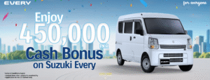 سوزوڪي پاڪستان ڪارن جي شوقين لاءِ هڪ نئين پرجوش پيشڪش جو اعلان ڪيو آهي! هڪ نئين سوزوڪي Every جي خريداري تي اهي تمام وڏي 450،000 روپين جي نقد انعام جي پيشڪش ڪري رهيا آهن [1]. هي محدود وقت جي پيشڪش سوزوڪي Every VX ويرينٽ لاءِ خاص آهي ۽ اهي ماڻهو جيڪي هڪ قابل اعتماد ۽ جديد گاڏي جا مالڪ بڻجڻ چاهين ٿا، انهن لاءِ هڪ شاندار موقعو آهي.
