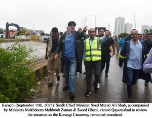 دورو: سنڌ جي وڏي وزير سيد مراد علي شاهه شهر جي صورتحال جو جائزو وٺڻ لاءِ ڊگهو دورو ڪيو۔ سڀ کان پهرين هن قيوم آباد ۽ ڪورنگي ڪاز وي جو دورو ڪيو جتي هن ڊي واٽرنگ آپريشن جو جائزو ورتو۔ قيوم آباد فلائي اوور وٽ پاڻي گڏ ٿي ويو هو جتي مشينري لڳايل هئي۔ وڏي وزير چيو ته ڪورنگي ڪاز وي هڪ درياهه جو منظر پيش ڪري رهيو آهي ۽ هدايت ڪئي ته ملير ندي جي وهڪري ۾ گهٽتائي اچڻ بعد ان کي ڪليئر ڪيو وڃي۔ بعد ۾ هن شاهراهه ڀٽو ۽ ملير ندي جي آئوٽ فال جو معائنو ڪيو جتي چيـف سيڪريٽري آصف حيدر شاهه کيس سڄي رات جي ريسڪيو ڪوششن بابت بريفنگ ڏني۔ وڏي وزير هدايت ڪئي ته ھيٺائين علائقن جي شهرين کي مسلسل صورتحال کان آگاهه ڪيو وڃي ۽ KMC، PDMA، ريسڪيو 1122، ميونسپل ٽائون انتظاميا، واٽر بورڊ ۽ پوليس سڀ رليف آپريشن ۾ سرگرم رهن۔ هن پوليس کي هدايت ڪئي ته ٽريفڪ جو وهڪرو يقيني بڻائڻ لاءِ تعيناتي ڪئي وڃي۔ ملير 15 تي هن ٽريفڪ انتظام ۽ پاڻي جي نيڪال جو جائزو ورتو ۽ هدايت ڪئي ته جيئن ئي برسات رڪجي ھيٺائين علائقن مان پاڻي فوري صاف ڪيو وڃي، ساڳئي وقت ضلعي انتظاميا ۽ سالڊ ويسٽ مينيجمينٽ بورڊ کي صفائي جاري رکڻ لاءِ چيو۔ وڏي وزير بعد ۾ سعدي ٽائون پهتو جتي کيس بريفنگ ڏني وئي ته لٺ ۽ ٿڌو ڊيم اوور فلو ھجڻ سبب موٽر وي ٽائون ۾ داخل ٿي ويو آهي۔ هن گاڏي مان لهي شهرين سان ملاقات ڪئي ۽ فوري ڪارروائي جي خاطري ڪرائي۔ هن واٽر بورڊ، ريسڪيو 1122 ۽ ڪنٽونمينٽ بورڊ کي ڊي واٽرنگ تيز ڪرڻ جي هدايت ڪئي۔ ان کان پوءِ مراد علي شاهه جناح ايونيو پهتو جتي هن مهراڻ نالي سان ڳنڍيل ڊرينيج سسٽم ۽ اتي لڳل مشينري جو معائنو ڪيو۔ اتان هو لياري ندي پهتو ۽ نيڪال جي صورتحال جو جائزو ورتو۔ هن چيو ته لياري ندي منگهوپير ۽ گڏاپ جبلن مان وهي، اورنگي ٽائون، سائيٽ ايريا، ناظم آباد، لياقت آباد، گل بهار کان ٿيندي کارادر، مٺادر، ويسٽ وھارف ۽ آخر ۾ بندرگاهه تائين وڃي ٿي۔ وڏي وزير چيو ته لياري ندي ۾ پاڻيءَ جو دٻاءُ وڌيڪ آهي پر وهڪرو مسلسل جاري آهي۔ پنهنجي دوري دوران هن بار بار هدايت ڪئي ته رليف سرگرمين ۾ تيزي آندي وڃي، سڀ شهري ادارا پاڻ ۾ تعاون ڪن ۽ شهرين کي لڳاتار آگاهه ڪيو وڃي ته جيئن برسات دوران مشڪلات گهٽ کان گهٽ ٿين۔