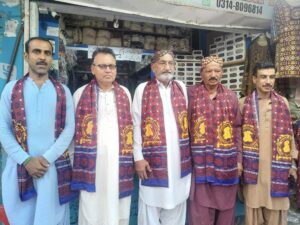 لک قرب محترم شاھنواز راجپر ۽ محترم ھمسفر گاڏھي جو اڄ وقت ڪڍي مھراڻ ھينڊي ڪرافٽس گلشن حديد تي آيا مون کين مھراڻ ھينڊي ڪرافٽس جي طرفان تيار ڪيل سنڌ ۽ سنڌو