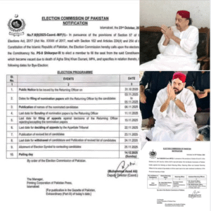 جناب آغا ســراج خان دراني صاحب جي خالي سيٽ تي اليڪشن جو شيڊول جاري،