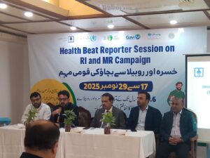 ڪراچي (رپورٽر)اي پي آءِ سنڌ يونيسيف جي سهڪار سان خانگی هوٽل ڪراچي ۾ خسرو ۽ روبيلا مهم تي ميڊيا بريفنگ جو انعقاد ڪيو ویو۔خسرو ۽ روبيلا ويڪسينيشن مهم 17 نومبر کان 29 نومبر تائين جاري رهندي.صحت جي ماهرن چيو ته مستقبل جي معمارن کي روبيلا ۽ خسرو جهڙين خطرناڪ بيمارين کان بچائڻ لاءِ سنڌ حڪومت 17 نومبر کان قومي ويڪسينيشن مهم شروع ڪري رهي آهي، جنهن دوران والدين کي پنهنجن ٻارن کي روبيلا ۽ خسرو کان بچاءُ جا ويڪسين ضرور لڳرائڻ گهرجي صحت جي ماهرن جو چوڻ آهي ته 6 مهينن کان 5 سالن جي عمر جي ٻارن کي خسرو ۽ روبيلا کان بچاءُ جا ويڪسين لڳائڻ گهرجن.تقريب ۾ صحت جي ماهرن ۽ ميڊيا جي نمائندن شرڪت ڪئي.صحت جي ماهرن چيو ته خسرو هڪ وائرل انفيڪشن آهي جيڪو تيز بخار، کنگهه، نڪ وهڻ، اکيون ڳاڙهيون ٿيڻ ۽ هڪ خارش جو سبب بڻجندو آهي ، خسرو بیماري سنگين پيچيدگين جو سبب بڻجي سگهي ٿو۔سيشن ۾ ميڊيا ذريعي ٻڌايو ويو ته خسرو ۽ روبيلا تمام گهڻیون موتمار بيماريون آهن ۽ هن موذي بيماري خلاف احتياطي تدبيرون ڪيئن اختيار ڪيون