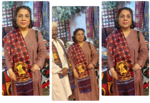 پھرين ڏينھن تي سگا خواتين شاخ جي ممبر ۽ سنڌي ادبي سنگت عورت شاخ ڪراچي جي ممبر سنڌ ۽ سنڌ جي ثقافت سان بيحد پيار ڪندڙ ۽ مھراڻ ھينڊي ڪرافٽس گلشن حديد جي مستقل ڪسٽمر محترمه مٺڻ سومرو مھراڻ ھينڊي ڪرافٽس جو اسٽال وزٽ ڪيو مون کين ويلڪم ڪندي سنڌ ادبي فيسٽول جو پرنٽيڊ اجرڪ اوڍايو