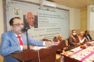 سنڌ يونيورسٽي جي ھسٽري شعبي طرفان انسٽيٽيوٽ آف سنڌالاجي جي سهڪار سان “ننڍي کنڊ جي سياسي تاريخ ۾ ﷲ بخش سومرو ۽ ٻين سياسي شخصيتن جو ڪردار” جي سري ھيٺ ليڪچر منعقد، نامياري تاريخدان ڊاڪٽر اشتياق احمد ليڪچر ڏنو، وائيس چانسلر ڊاڪٽر فتح محمد مري پاران پروگرام جي صدارت ڪئي وئي