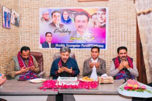 پيپلزپارٽي ضلعي لاڙڪاڻي جي فناس سيڪريٽري ۽ شيخ ينگسٽر فورم جي چيئرمين اعجاز علي شيخ پاران سندس پنھنجي آفيس ۾ واپارين ۽ پارٽي جي دوستن سان گڏجي ڪيڪ ڪاٽيو ۽ جنم ڏينھن جي موقعي تي سردار طارق انور خان سيال صاحب کي مبارڪباد پڻ ڏني.